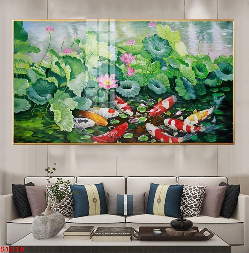 Bức tranh Cửu Ngư Quần Hội tại Zen House không chỉ là tác phẩm nghệ thuật trang trí mà còn mang đậm ý nghĩa phong thủy. Với hình ảnh chín con cá chép uyển chuyển bơi lội dưới hồ sen, bức tranh tượng trưng cho sự kiên trì, vượt qua khó khăn và vươn tới thành công.