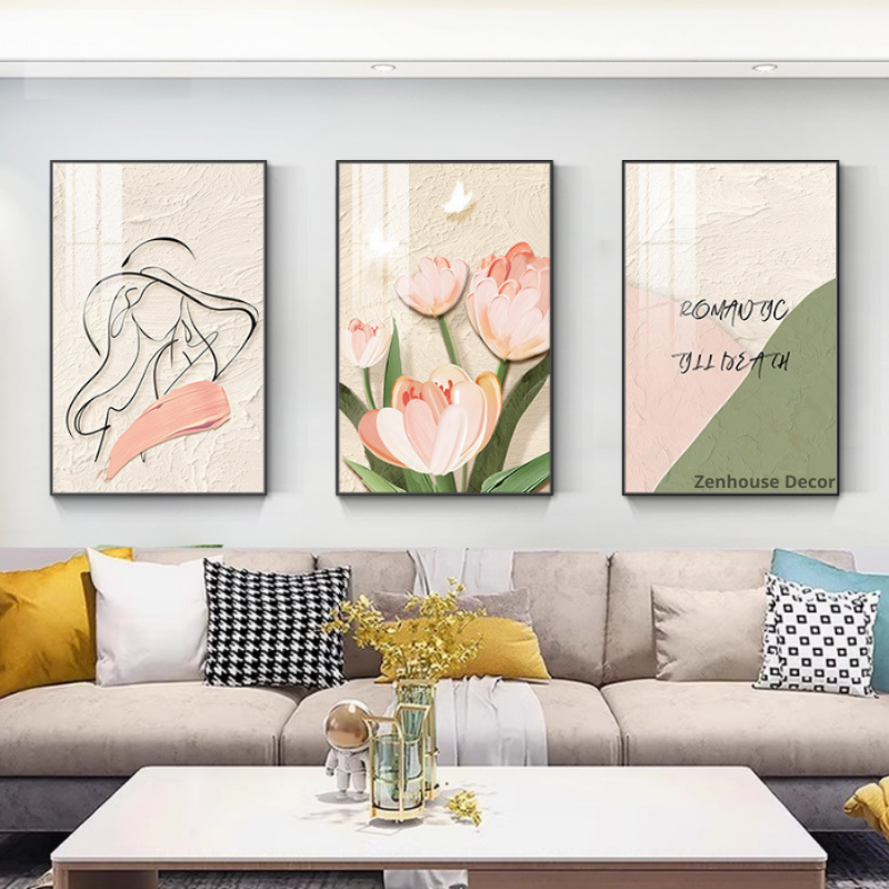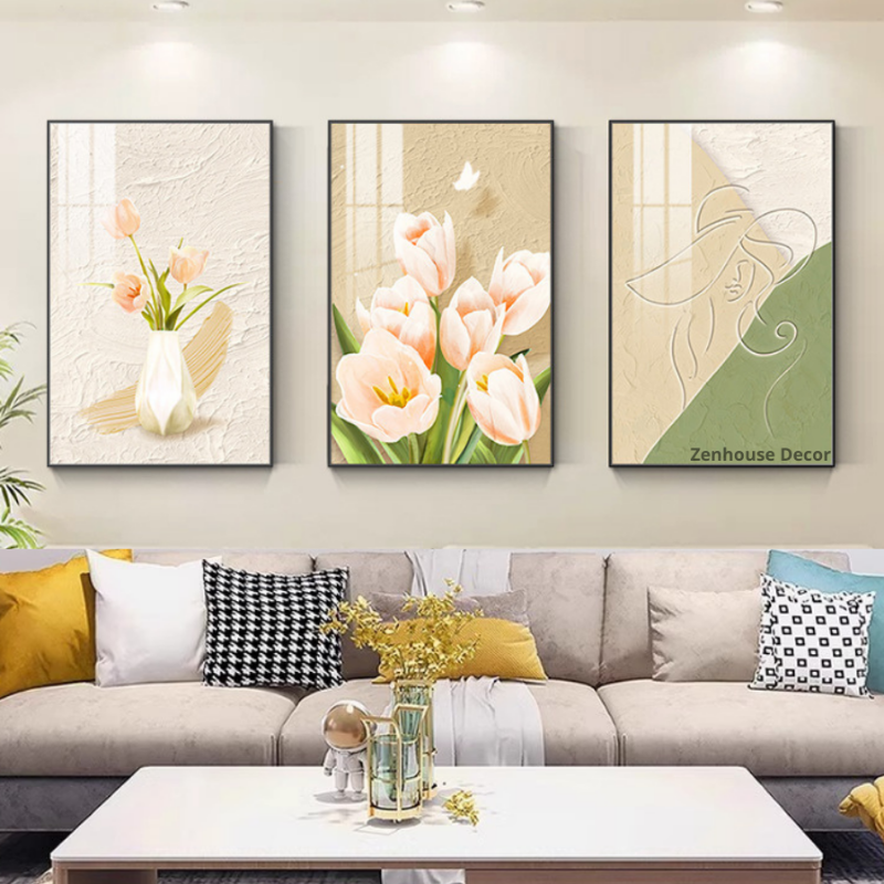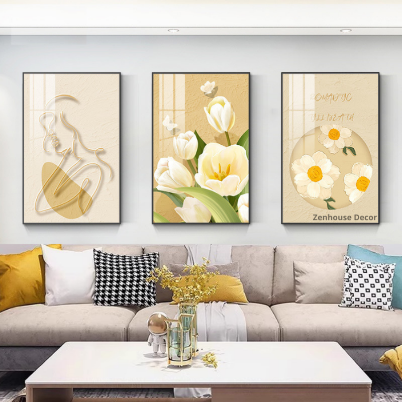 Tranh Bộ 3 Hoa Phòng Khách 02