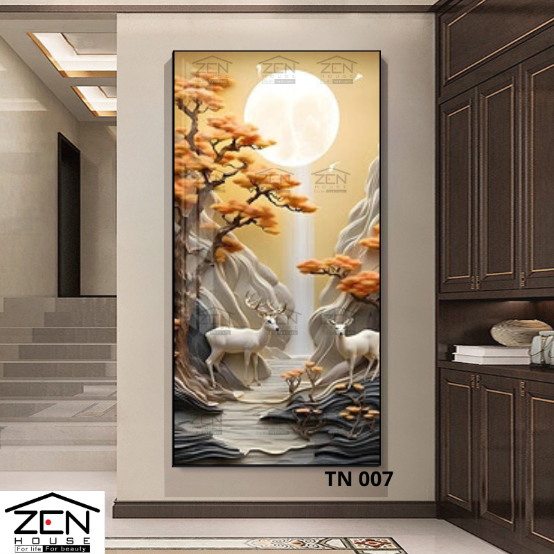 Bức tranh Hươu Dưới Ánh Trăng tại Zen House không chỉ mang tính thẩm mỹ mà còn ẩn chứa những giá trị tinh thần sâu sắc. Hình ảnh chú hươu thanh tao giữa khung cảnh thiên nhiên huyền ảo, ánh trăng soi rọi dịu dàng, tạo nên một không gian yên bình và mơ mộng. Hươu là biểu tượng của sự kiên nhẫn, thanh thoát và trường thọ, mang đến những điều may mắn và phước lành cho gia chủ.