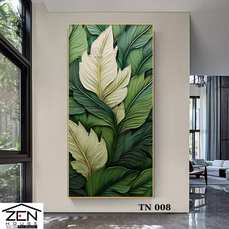 Tranh Treo Tường Lá Trừu Tượng mang đến cho không gian phòng khách trở nên sang trọng, cuốn hút hơn nhờ nét chấm phá nghệ thuật trong không gian.