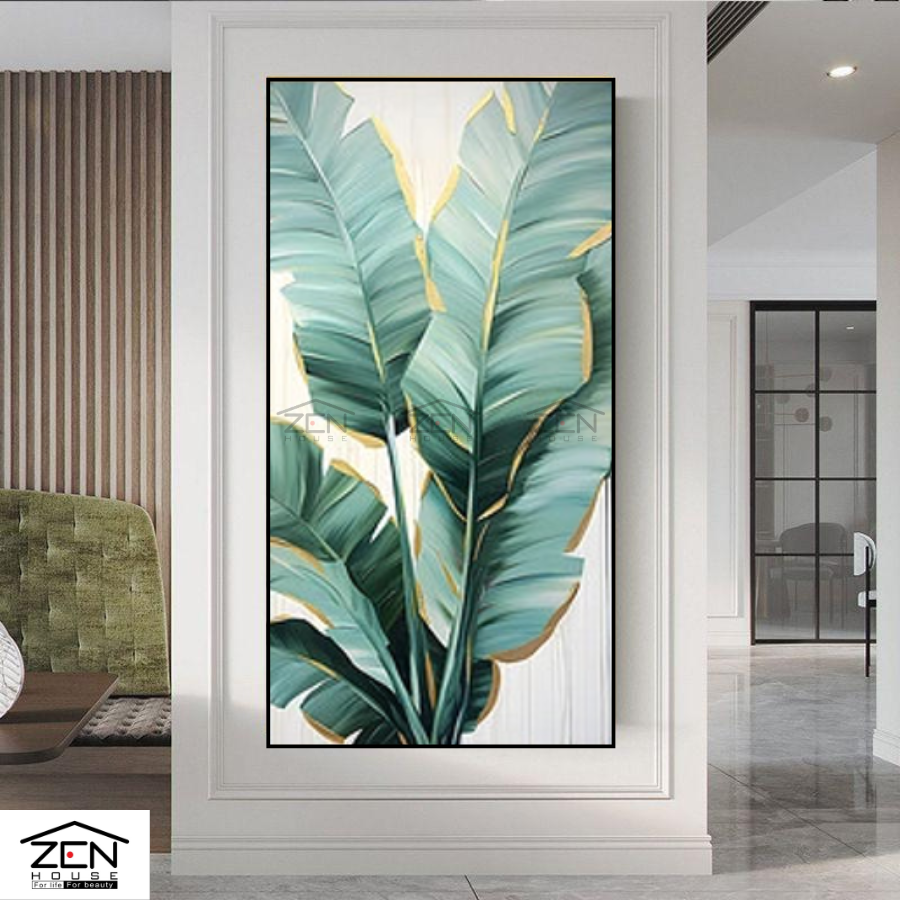 Tranh Treo Tường Lá Trừu Tượng mang đến cho không gian phòng khách trở nên sang trọng, cuốn hút hơn nhờ nét chấm phá nghệ thuật trong không gian.