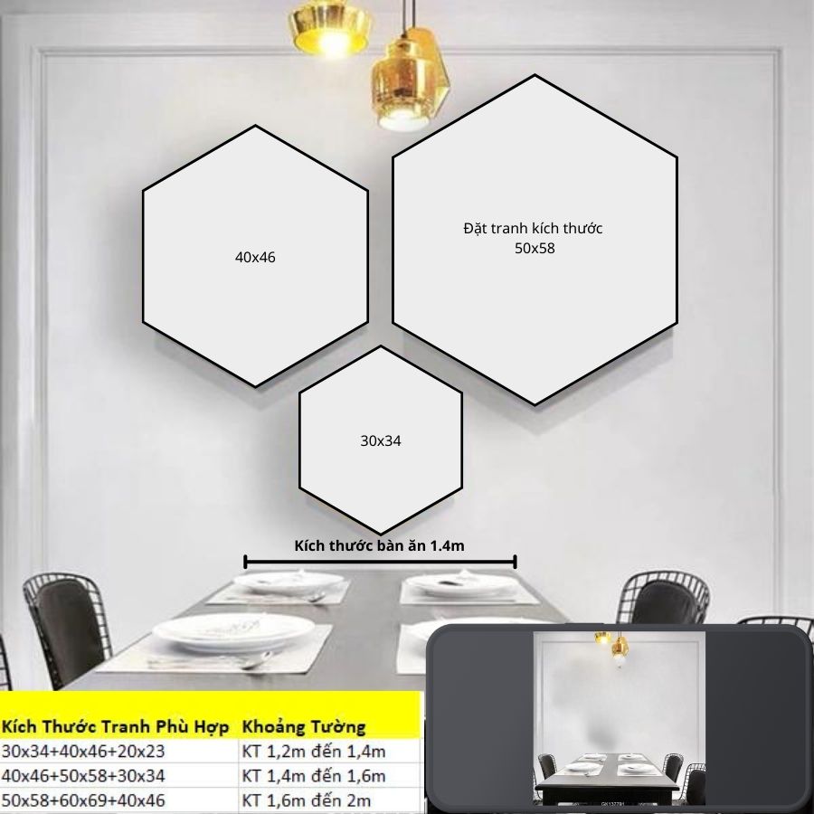 Hình dáng lục giác tượng trưng cho sự cân bằng, ổn định và hài hòa trong cuộc sống. Khi được bố trí trong không gian nội thất, bức tranh giúp làm tăng sự hiện đại và tạo nên một cảm giác mở rộng, thoáng đãng cho căn phòng.