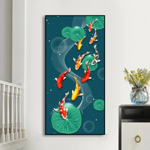 Bức tranh Cửu Ngư Quần Hội tại Zen House không chỉ là tác phẩm nghệ thuật trang trí mà còn mang đậm ý nghĩa phong thủy. Với hình ảnh chín con cá chép uyển chuyển bơi lội dưới hồ sen, bức tranh tượng trưng cho sự kiên trì, vượt qua khó khăn và vươn tới thành công.