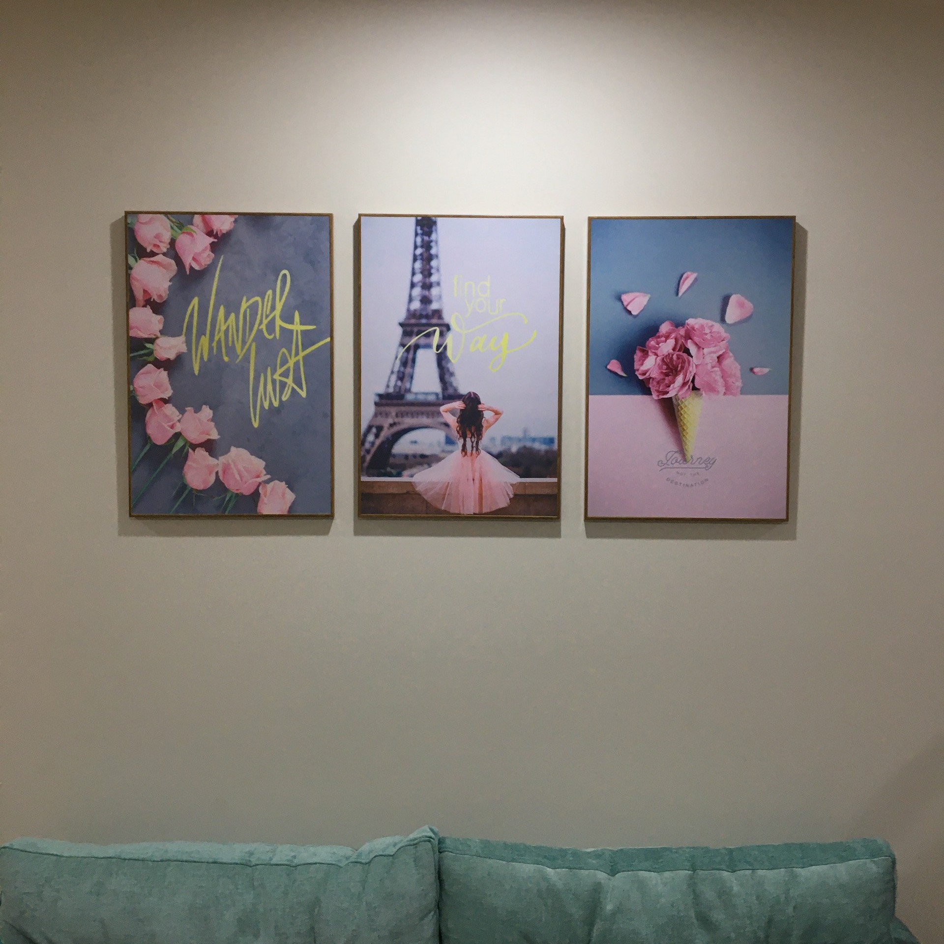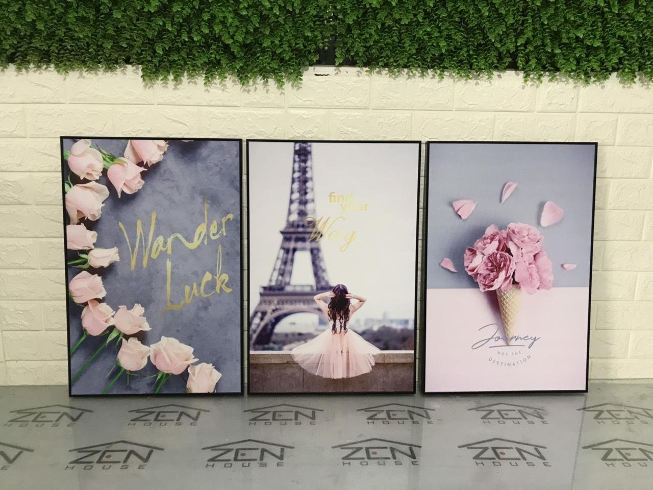 Tranh Cô Gái Dưới Chân Tháp Eiffel được kết hợp với 2 bức tranh hoa hồng nhẹ nhàng rất phù hợp với cô nàng mộng mơ. Bộ tranh mang đến cho không gian phòng ngủ của bạn một màu sắc dễ thương hơn làm xua tan đi những mệt mỏi trong cuộc sống.