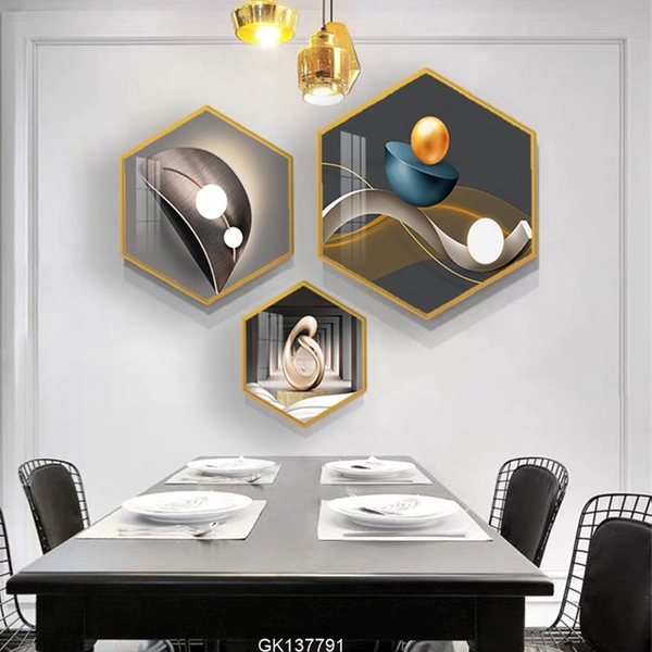 Hình dáng lục giác tượng trưng cho sự cân bằng, ổn định và hài hòa trong cuộc sống. Khi được bố trí trong không gian nội thất, bức tranh giúp làm tăng sự hiện đại và tạo nên một cảm giác mở rộng, thoáng đãng cho căn phòng.