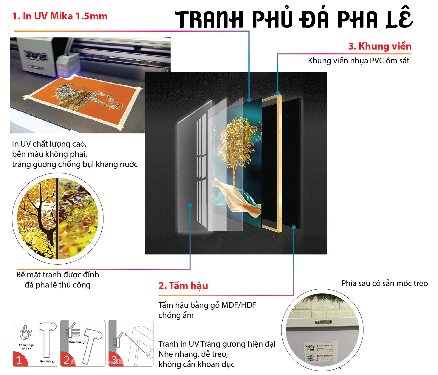 3. • Tranh được tráng gương và kết hợp đính đá pha lê trên bề mặt.