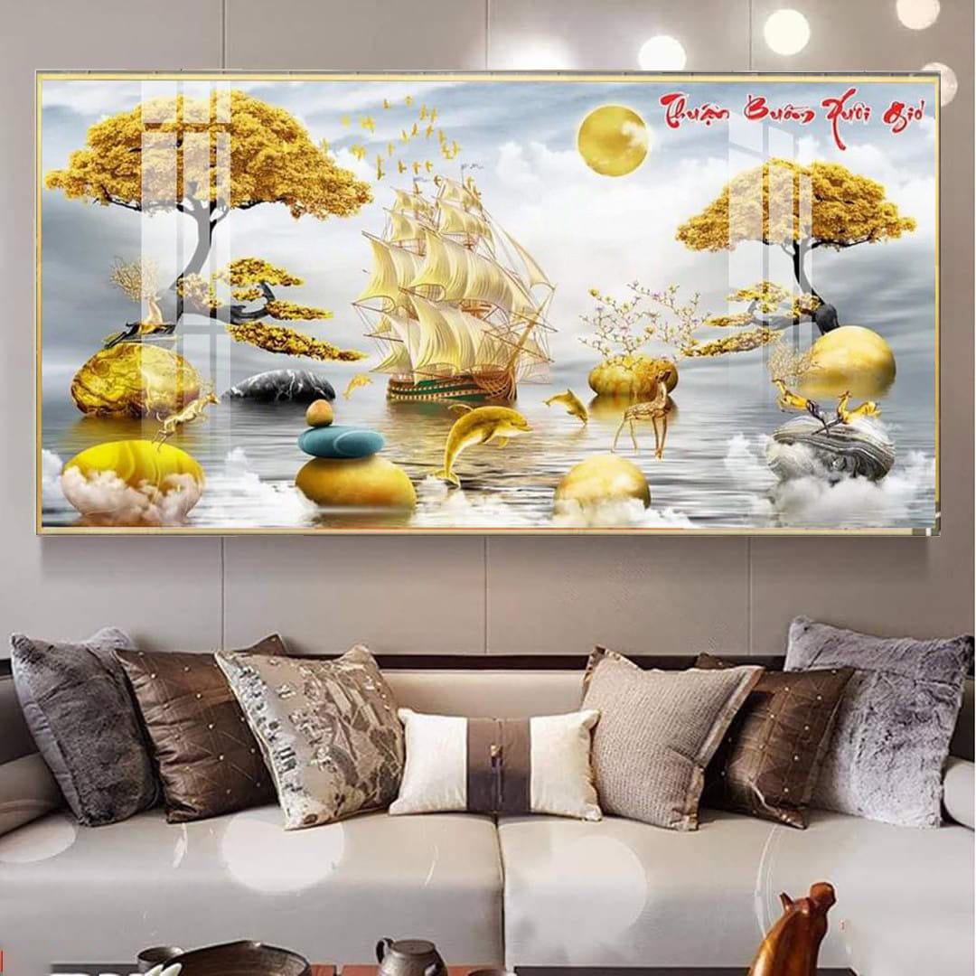 Bức tranh “Thuận Buồm Xuôi Gió” tại Zen House mang ý nghĩa biểu trưng cho sự suôn sẻ, thuận lợi trong công việc và cuộc sống. Hình ảnh con thuyền căng buồm lướt sóng mạnh mẽ, tiến về phía trước tượng trưng cho sự thăng tiến, thành công và khát vọng vượt qua khó khăn. Trong phong thủy, tranh Thuận Buồm thường được treo để thu hút tài lộc, mang lại sự may mắn cho gia chủ, đặc biệt là trong kinh doanh.