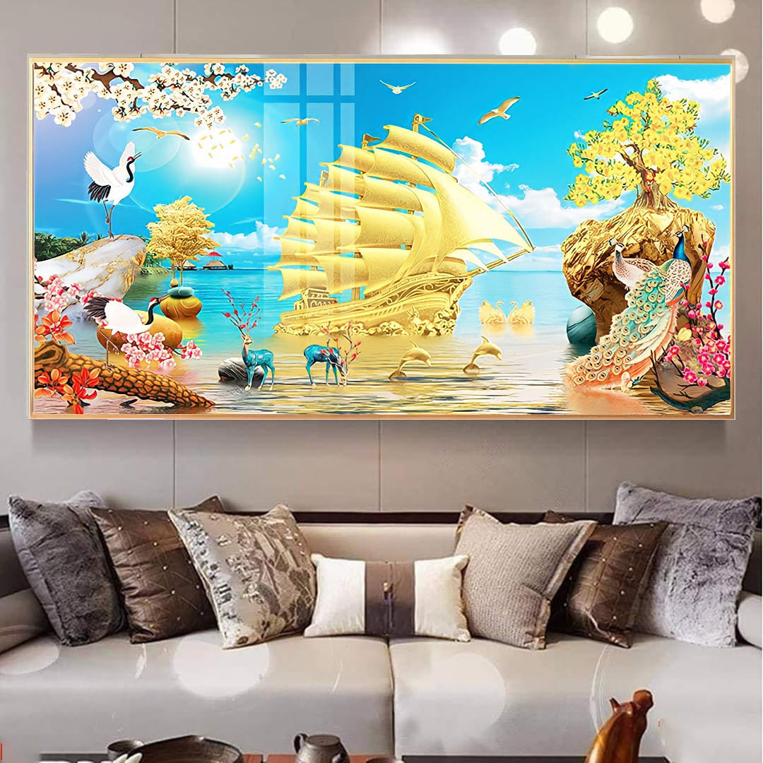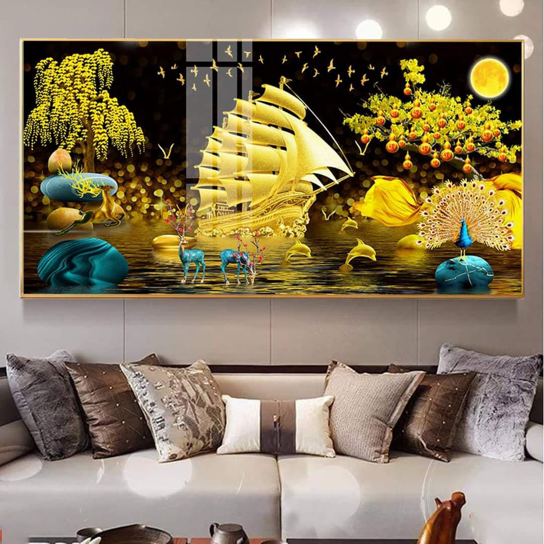 Bức tranh được chế tác bằng công nghệ tráng gương tinh xảo, tạo chiều sâu và ánh sáng rực rỡ cho không gian sống. Đây là sự lựa chọn hoàn hảo để làm quà tặng hoặc trang trí cho văn phòng, phòng khách.