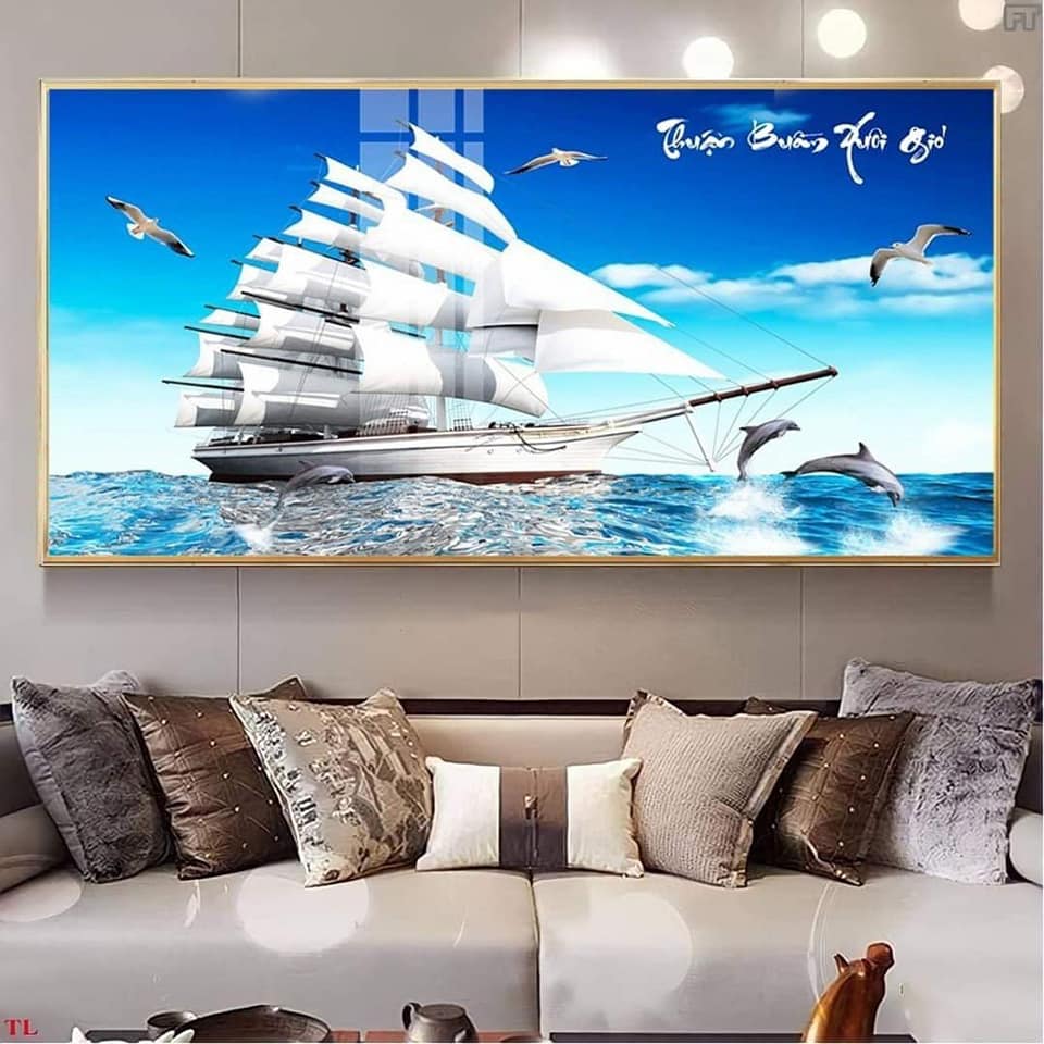 Tranh Thuyền Buồn cùng với khung cảnh thiên nhiên rực rỡ sắc xuân là biểu tượng cho sự may mắn, thịnh vượng, làm ăn trong kinh doanh được thuận buồm xuôi gió. Tranh thuyền buồm cũng là món quà ý nghĩa để biếu tặng sếp, hay quà tặng tân gia....