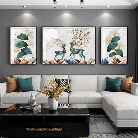 Tranh Phong Thủy Hươu Sừng Hoa thể hiện sức sống mãnh liệt, và lá rẻ quạt là tượng trưng cho sự may mắn. Tranh thích hợp dùng để trang trí treo trong phòng khách giúp không gian trở nên ấm cúng và mang nhiều tài lộc, may mắn về cho gia chủ.