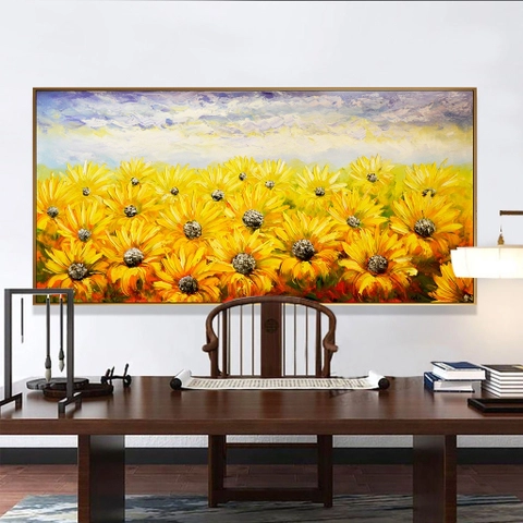 Tranh phong cảnh vẽ cánh đồng hoa hướng dương treo trang trí phòng khách gia đình Bức tranh cánh đồng hoa là một món quà ý nghĩa dành tặng người thân, bạn bè, đối tác…