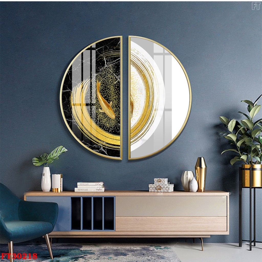 Tranh bán nguyệt song ngư sáng loáng , bóng bẩy mang đến cho không gian căn phòng một điểm nhấn riêng biệt và có ý nghĩa phong thủy tài lộc, may mắn.