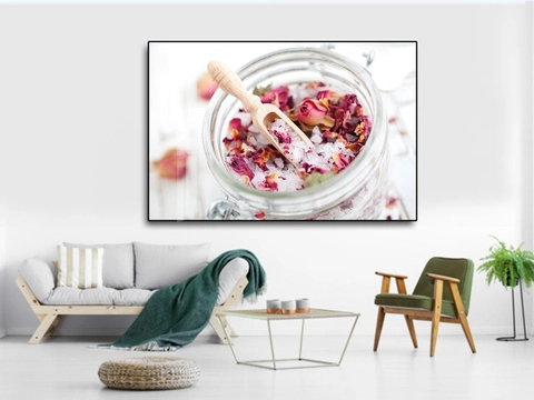 Tranh treo tường spa đá thơm và sắc hoa hồng mang đến cho không gian spa của bạn quyến rũ, xinh đẹp hơn.giúp cho khách hàng cảm thấy thư giãn tạo không gian làm đẹp.