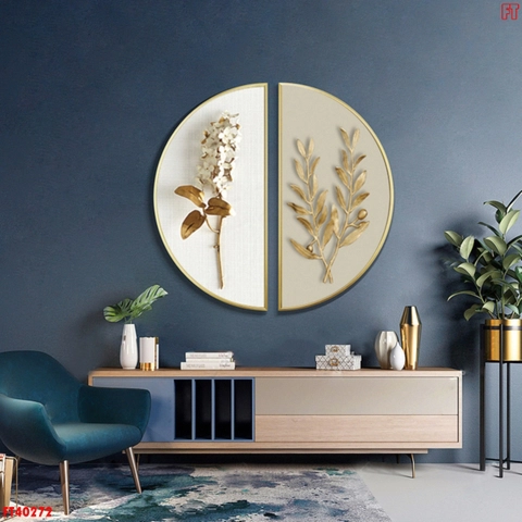 Tranh bán nguyệt hoa lá sáng loáng , bóng bẩy mang đến cho không gian căn phòng một điểm nhấn riêng biệt và có ý nghĩa phong thủy tài lộc, may mắn.