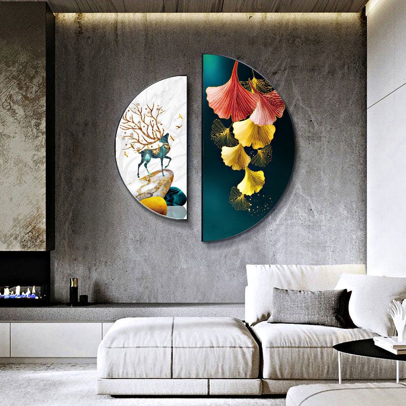 Tranh bán nguyệt Hươu sừng hoa và lá rẻ quạt ngày nay trở thành mẫu tranh trang trí độc đáo nhưng không kém phần sang trọng, ...