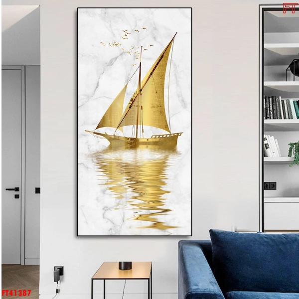 Tranh Treo Tường Thuyền Buồm Vàng với hình ảnh nghệ thuật con thuyền vàng đơn giản nhưng vẫn nổi bật sẽ mang đến điểm nhấn đặc biệt cho không gian treo , tranh thích hợp treo trong không gian phòng khách