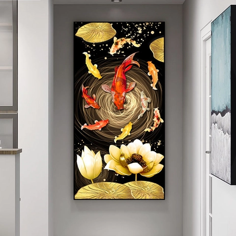 Bức tranh Cửu Ngư Quần Hội tại Zen House không chỉ là tác phẩm nghệ thuật trang trí mà còn mang đậm ý nghĩa phong thủy. Với hình ảnh chín con cá chép uyển chuyển bơi lội dưới hồ sen, bức tranh tượng trưng cho sự kiên trì, vượt qua khó khăn và vươn tới thành công.