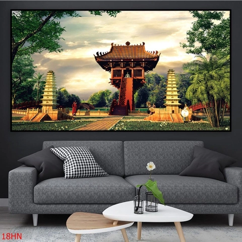 Phố cổ trong tranh treo tường phòng khách đem đến cho gia đình bạn những giây phút bình yên hiếm hoi của cuộc sống được hiện lên chân chất, giản dị vô cùng.