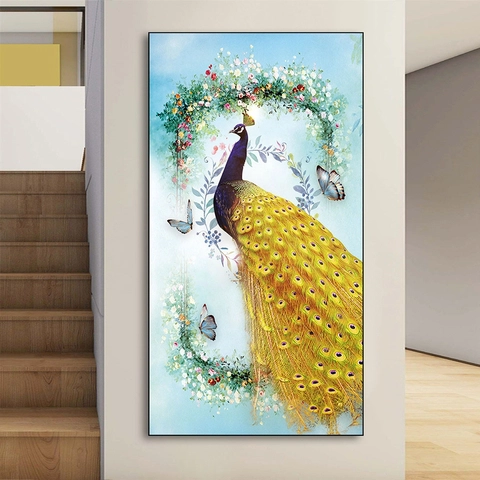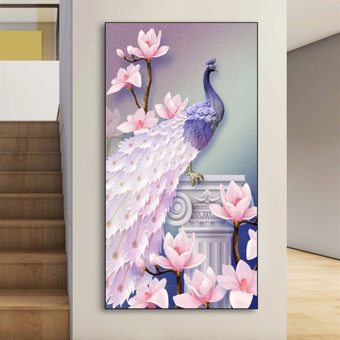 Chim Khổng Tước mang một vẻ đẹp mà khó loài chim nào sánh kịp bởi bộ lông rực rỡ độc đáo và quý hiếm thể hiện sự uy quyền, cao quý. Bởi vậy tranh chim công là vật phẩm may mắn, thúc đẩy danh tiếng, tiền tài, tài lộc và sự uy quyền cho gia chủ.