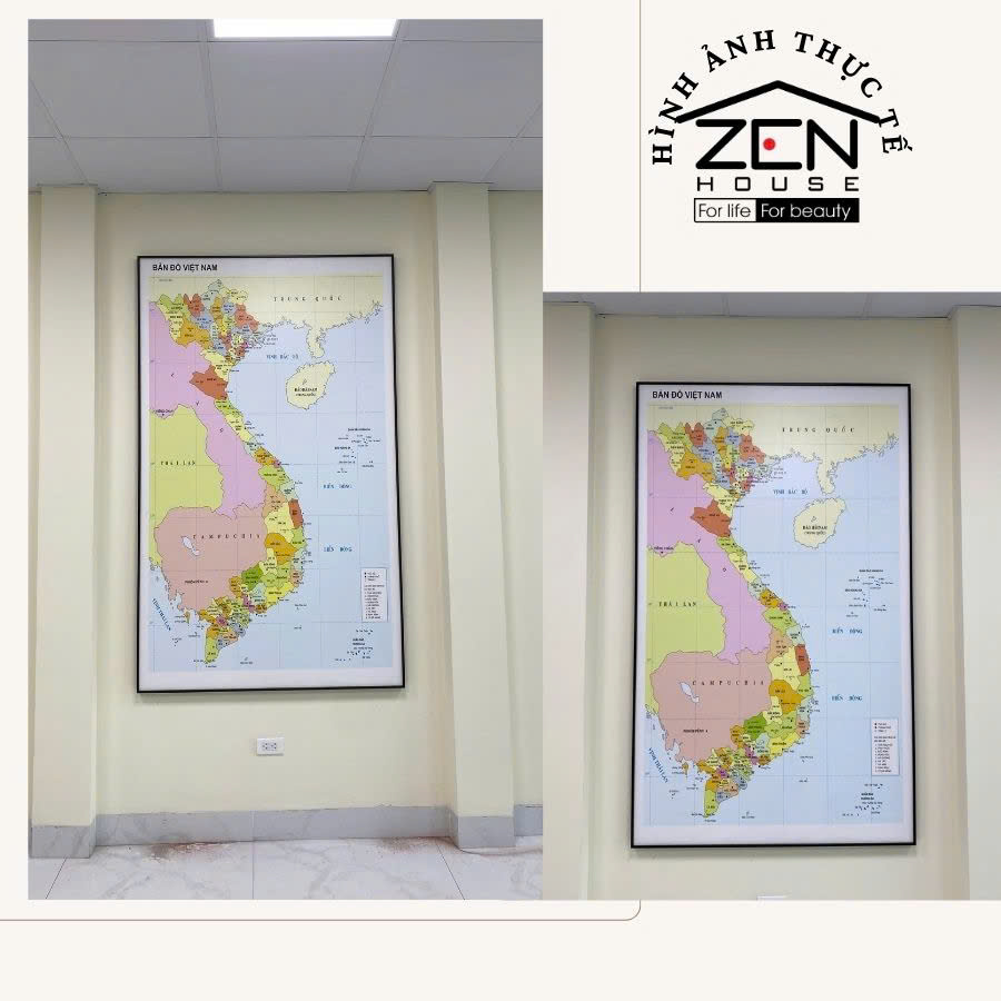 Tranh bản đồ Việt Nam tại Zen House được chế tác với chất liệu cao cấp, tạo nên một tác phẩm nghệ thuật độc đáo, tinh tế. Nó không chỉ làm đẹp không gian sống mà còn khơi dậy niềm tự hào và tình yêu sâu sắc dành cho quê hương.