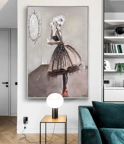 Với ánh sáng phản chiếu từ gương, bức tranh thêm phần lung linh, biến mỗi góc nhìn trở thành một trải nghiệm thị giác mới mẻ. Tranh hình cô gái không chỉ thể hiện vẻ đẹp nữ tính mà còn truyền tải sự mạnh mẽ, tự tin, phù hợp với những ai yêu thích sự phóng khoáng nhưng vẫn giữ được nét tinh tế.
