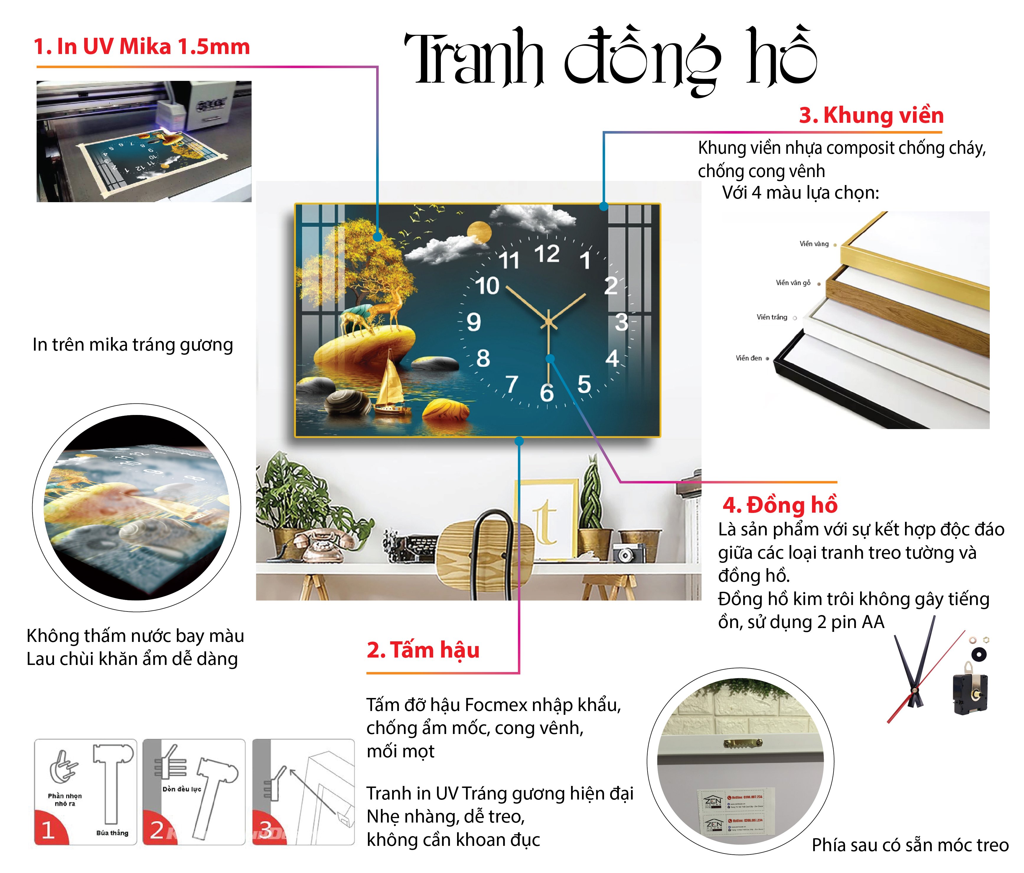 Loại tranh này thường có 2 phần chính là Tranh và Đồng hồ.