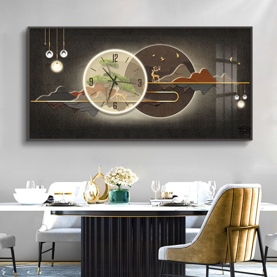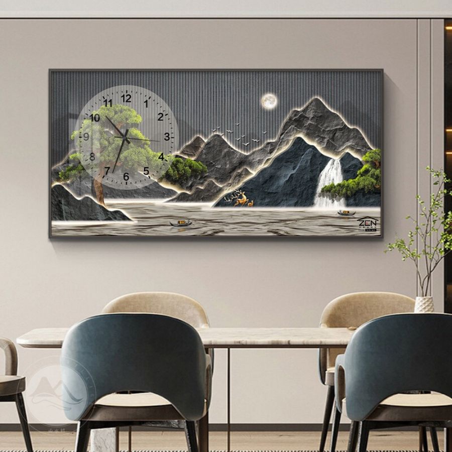 Tranh hươu, núi và ánh trăng là sự kết hợp hoàn hảo giữa vẻ đẹp mạnh mẽ và sự tĩnh lặng huyền bí của thiên nhiên. Hươu, với dáng vẻ thanh cao, tượng trưng cho sự trường thọ và thanh bình. Núi non sừng sững mang ý nghĩa của sức mạnh, sự bền bỉ và trường tồn qua thời gian. Ánh trăng dịu dàng, chiếu sáng cảnh vật, đại diện cho sự bình yên, tĩnh lặng và những giấc mơ đêm tròn đầy.
