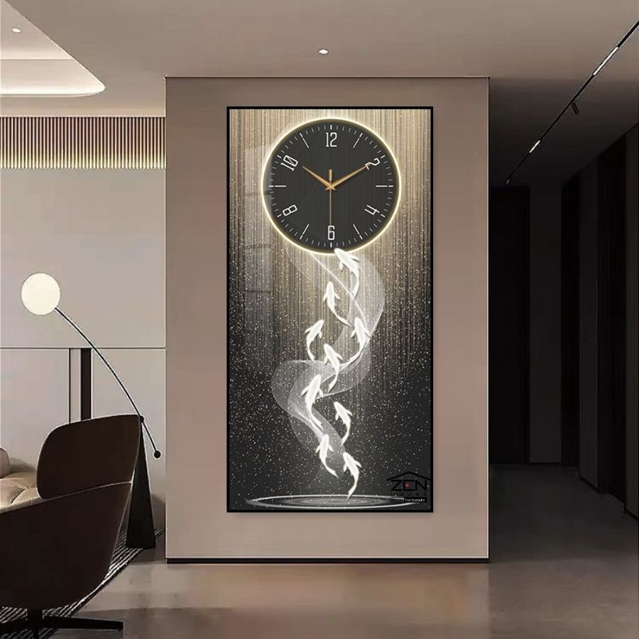 Treo một bức tranh Đồng Hồ Tráng Gương Cá trong nhà hay văn phòng không chỉ giúp tạo điểm nhấn nghệ thuật mà còn thu hút năng lượng tích cực, mang lại thịnh vượng và hạnh phúc cho gia chủ. Tại Zen House, mỗi bức tranh cá được chế tác từ chất liệu cao cấp và kết hợp với công nghệ hiện đại, mang đến sự tinh tế và phong thủy tốt lành, giúp không gian sống của bạn thêm phần sang trọng và đầy ý nghĩa.