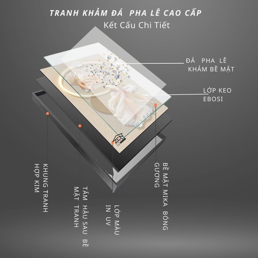 Bức tranh được chế tác bằng công nghệ tráng gương tinh xảo, tạo chiều sâu và ánh sáng rực rỡ cho không gian sống. Đây là sự lựa chọn hoàn hảo để làm quà tặng hoặc trang trí cho văn phòng, phòng khách.