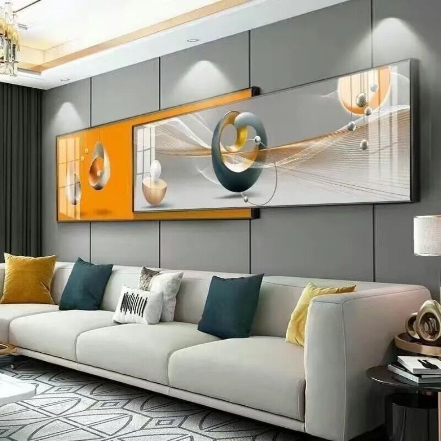 Bức Tranh Phòng Khách mang đến cho không gian phòng khách trở nên sang trọng, cuốn hút hơn nhờ nét chấm phá nghệ thuật trong không gian..!