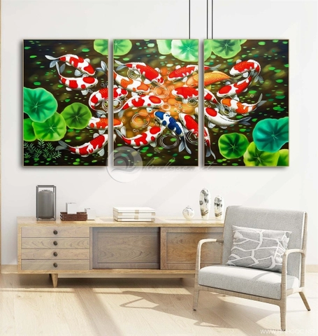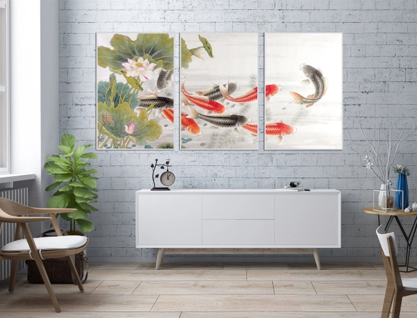Cá từ lâu đã được coi là biểu tượng của sự sung túc và may mắn. Đặc biệt, hình ảnh đàn cá thể hiện sự kết hợp hài hòa, đoàn kết trong gia đình, đồng thời cũng mang lại sự bình an và sự phát đạt cho gia chủ.