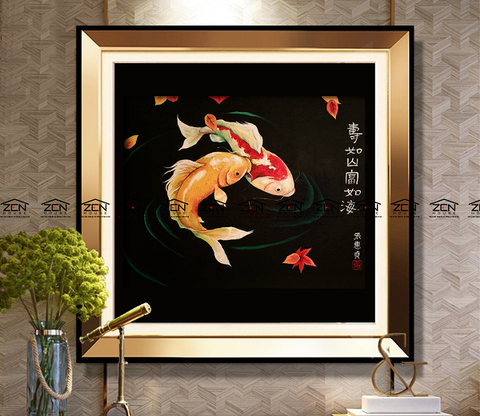 Bức tranh Cá Chép tại Zen House là tác phẩm nghệ thuật không chỉ đẹp mắt mà còn mang đến ý nghĩa phong thủy mạnh mẽ. Cá chép từ lâu đã được xem là biểu tượng của sự kiên trì, bền bỉ và thành công. Hình ảnh cá chép vượt vũ môn gắn liền với câu chuyện vượt khó để hóa rồng, thể hiện ý chí mạnh mẽ và khát vọng vươn tới đỉnh cao.
