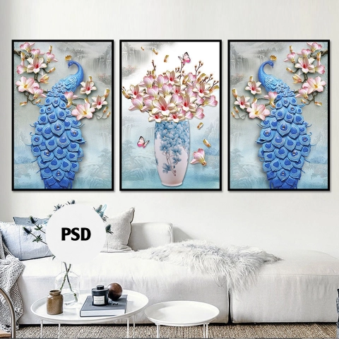 Tranh treo tường đôi chim công xanh và bình hoa champa cho bạn có những giây phút thư giãn tuyệt vời khi thưởng thức tranh treo tường và cũng để tranh làm điểm nhấn trang trí cho căn nhà bạn thêm phần độc đáo và cá tính.
