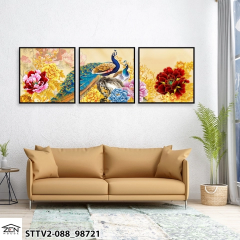 Bức tranh Chim Công tại Zen House không chỉ là tác phẩm nghệ thuật tuyệt đẹp, mà còn mang biểu tượng của sự quyền quý, thịnh vượng và may mắn. Chim công, với bộ lông sặc sỡ, tượng trưng cho sự thanh cao, duyên dáng và thịnh vượng. Đặc biệt, trong phong thủy, chim công còn đại diện cho sự phát triển và thăng tiến trong công việc, sự nghiệp. Bức tranh được tạo nên từ công nghệ tráng gương hiện đại, giúp không gian sống thêm phần sang trọng, sáng sủa và cuốn hút.