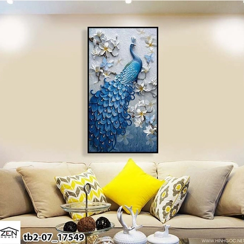 Treo tranh chim công trong nhà trong văn phòng theo phong thủy có tác dụng điều hòa âm dương, lấy lại hòa khí, làm cho công việc trong nhà, cơ quan, văn phòng bạn trở lên suôn sẻ.Một bức tranh treo tại văn phòng, phòng làm việc của bạn sẽ đem đến sự sang trọng, quyền quý và những ý nghĩa phong thủy vô cùng tốt đẹp cân bằng âm dương giúp sự nghiệp thăng tiến.