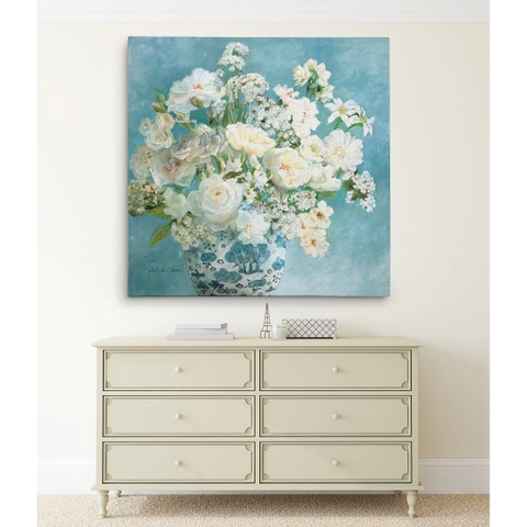 Tranh đơn bình hoa trắng nghệ thuật với hình ảnh hoa hồng trắng cùng màu sắc nhẹ nhàng sẽ mang đến sự trang nhã , sinh động cho không gian treo , tranh thích hợp treo trong không gian phòng khách