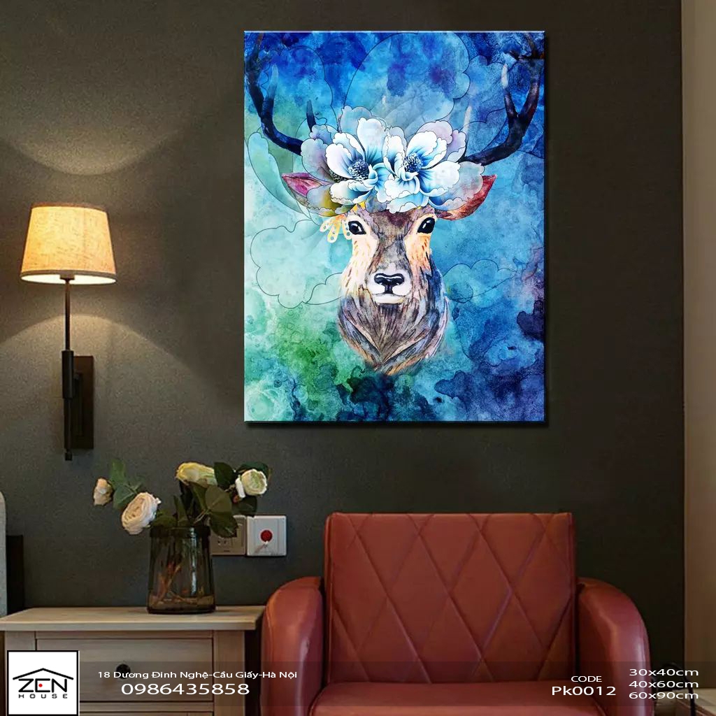 Tranh hoa Trên Sừng Hươu là biểu tượng của hòa bình và thanh bình. Hươu không là một loài động vật hiền lành, mang vẻ đẹp tự nhiên và sang trọng một cách đặc trưng.