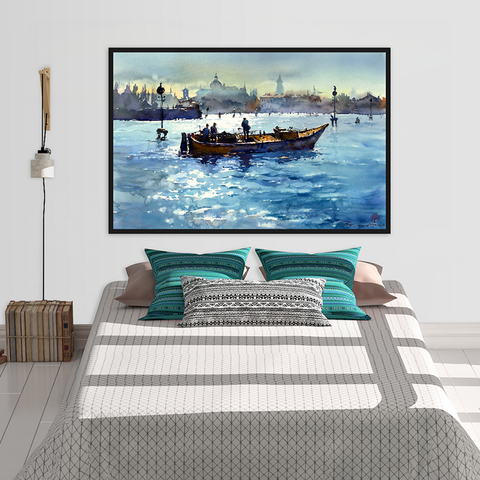 Con thuyền hẳn không còn xa lạ gì với mọi người trong câu nói “thuận buồm xuôi gió”. Ngày xưa, dân ta sống chủ yếu bằng nghề chài lưới, lênh đênh trên mặt biển cả tháng trời. Những công sức khổ cực như vậy thường hay bị công cốc bởi những cơn bão, sóng to gió lớn,.. Bức tranh canvas con thuyền như một lời chúc ngư dân bình an mạnh khỏe, gặp thời tiết thuận lợi và thu hoạch được nhiều tôm cá.