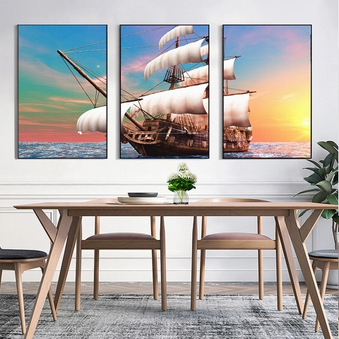 Con thuyền hẳn không còn xa lạ gì với mọi người trong câu nói “thuận buồm xuôi gió”. Ngày xưa, dân ta sống chủ yếu bằng nghề chài lưới, lênh đênh trên mặt biển cả tháng trời. Những công sức khổ cực như vậy thường hay bị công cốc bởi những cơn bão, sóng to gió lớn,.. Bức tranh canvas con thuyền như một lời chúc ngư dân bình an mạnh khỏe, gặp thời tiết thuận lợi và thu hoạch được nhiều tôm cá.