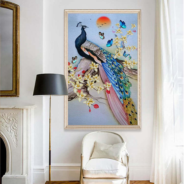 Bên cạnh đó, bộ lông đuôi với màu sắc sặc sỡ tựa như những đồng tiền trải dài. Là vẻ đẹp đặc trưng của chim công. Để lông công trong phòng làm việc sẽ tạo ra sự sang trọng. Uy nghi và phần nào đó mang lại tiền tài, vượng khí cho chủ nhân căn phòng đó.